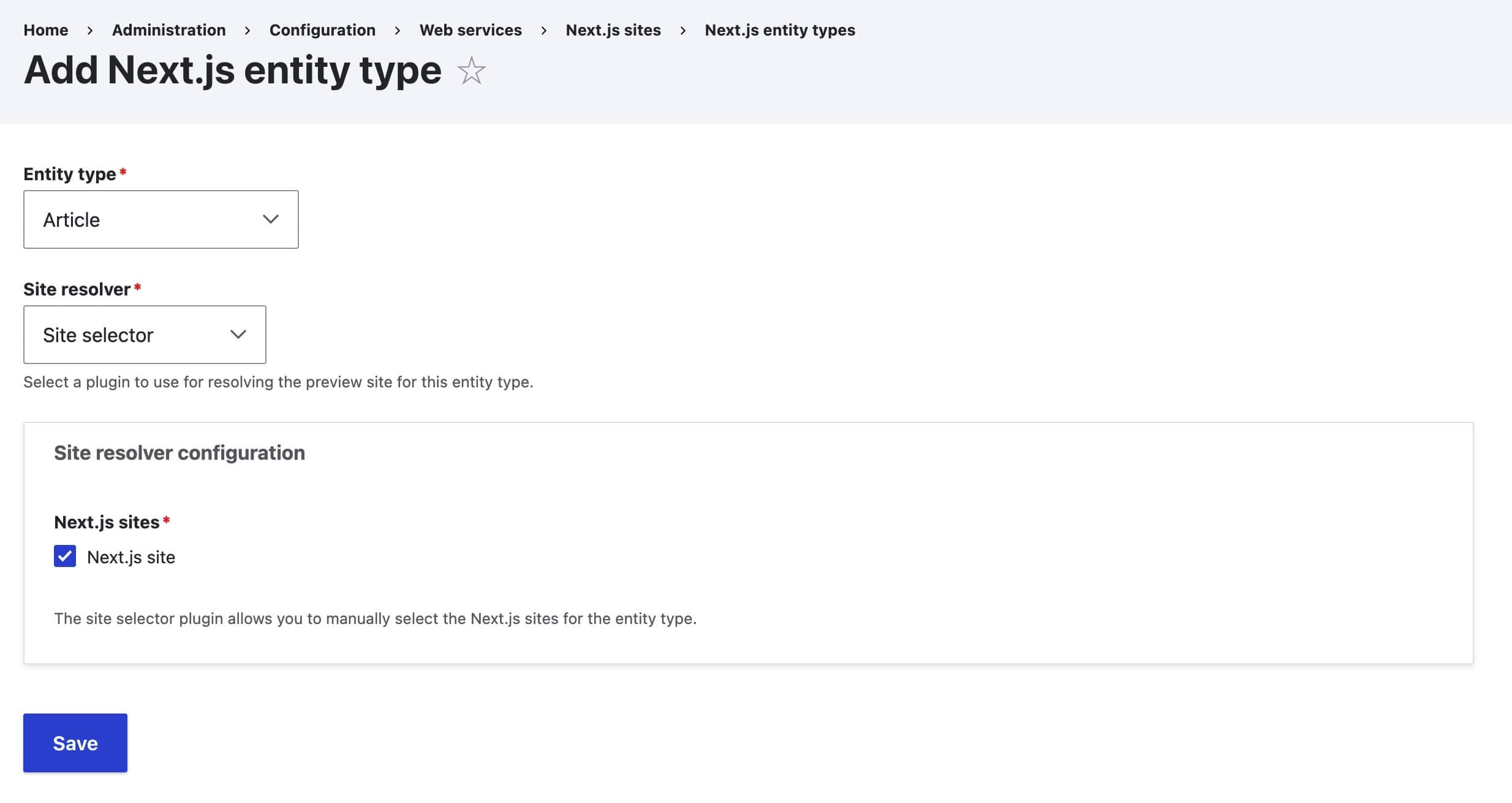 To enable content preview inside Drupal, we need to configure a site resolver for the Article content type.